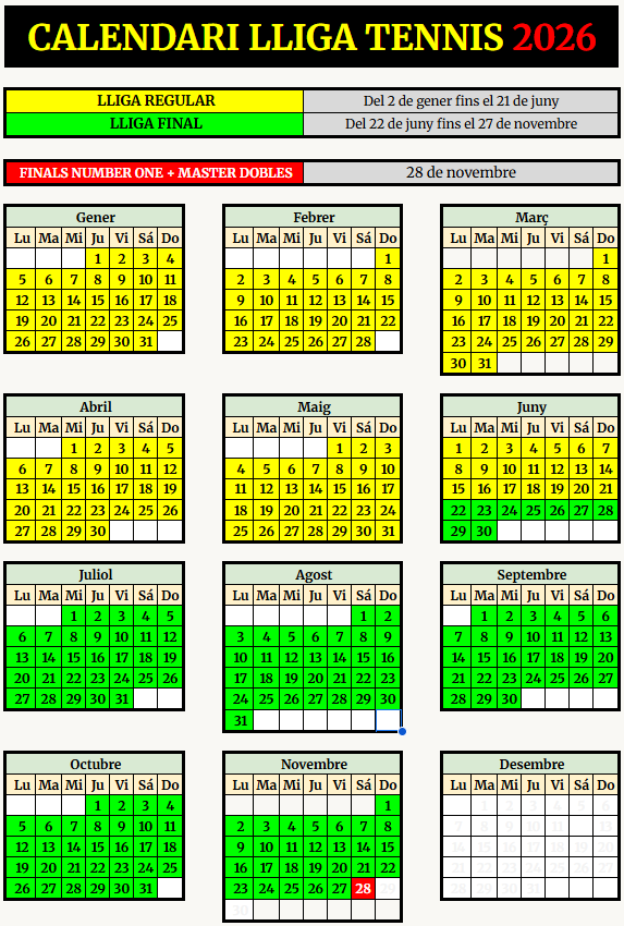 La lliga de tennis CTPD es jugarà durant tot l’any i constara de dues fases/lligues: